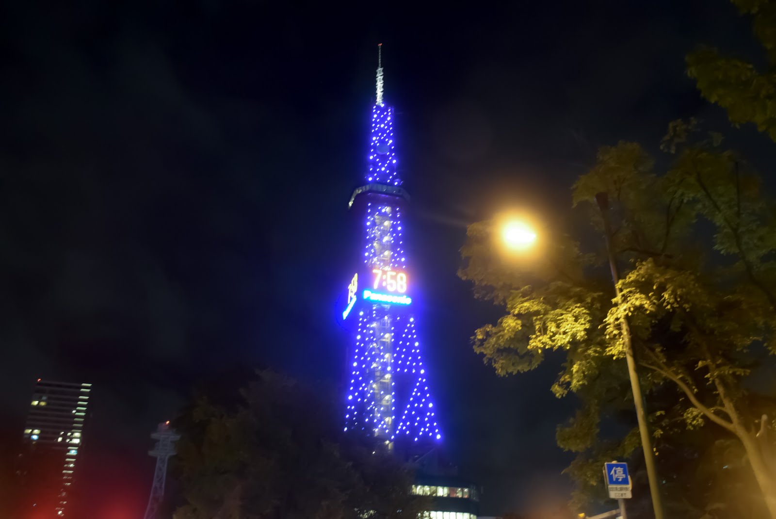 道マラ以来4週間ぶりに札幌に寄ると、胆振東部地震後に消えていたテレビ塔の明かりが戻っていました。